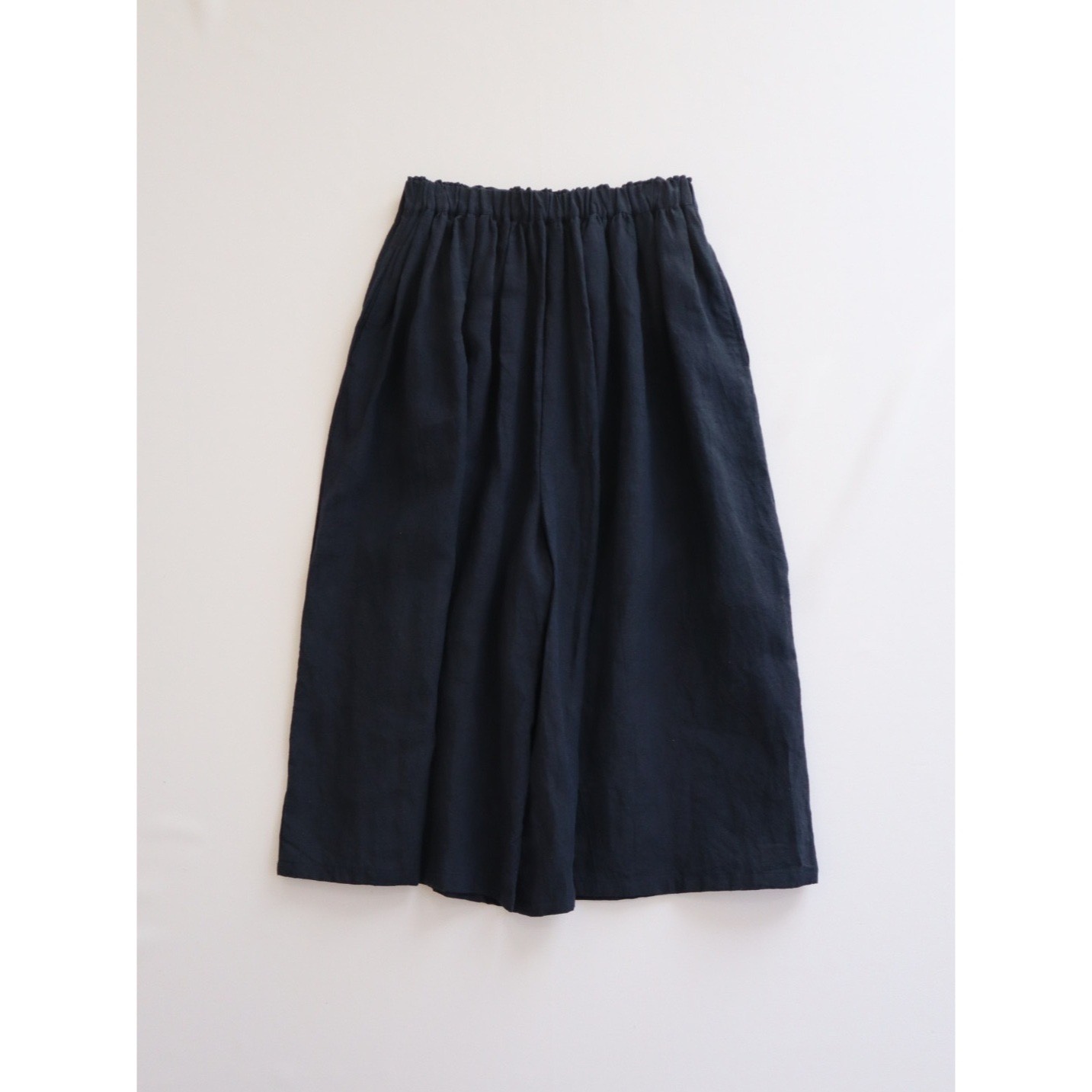 上質なベルギーリネン40Sのギャザーワイドパンツ